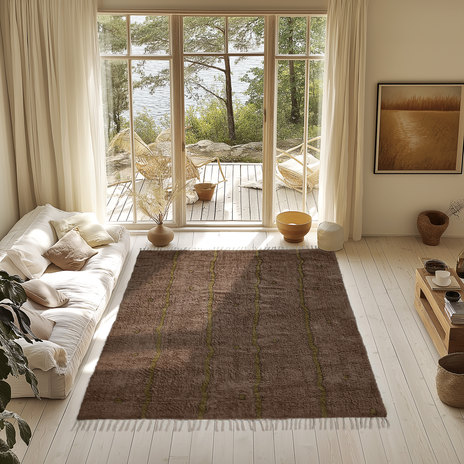 Das zeitlose Design unseres Baumwollteppichs fügt sich perfekt in verschiedene Einrichtungsstile ein und ist somit die perfekte Wahl, ob Sie Ihr Zuhause erneuern oder Ihre bestehende Einrichtung ergänzen möchten.